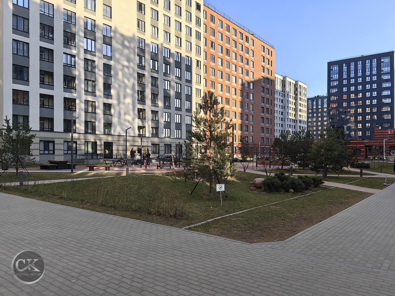 • Имеются детская площадка и зоны для прогулок.