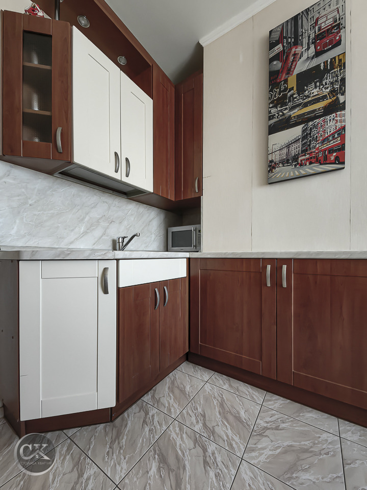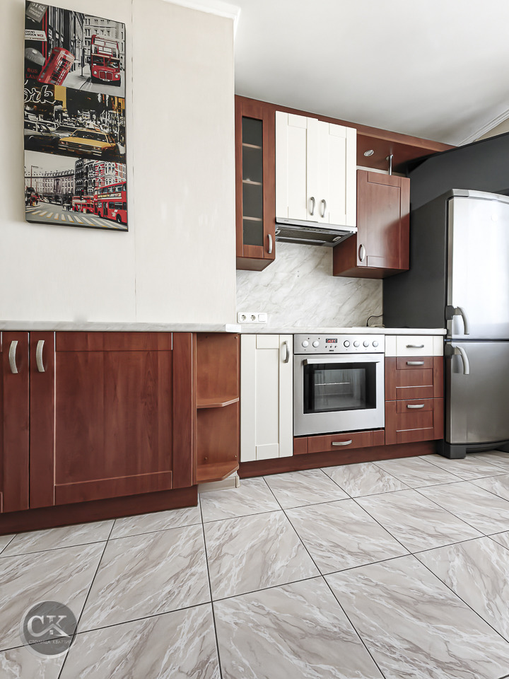- полностью оборудованная кухня: холодильник, варочная панель, духовой шкаф, вытяжка, микроволновая печь.