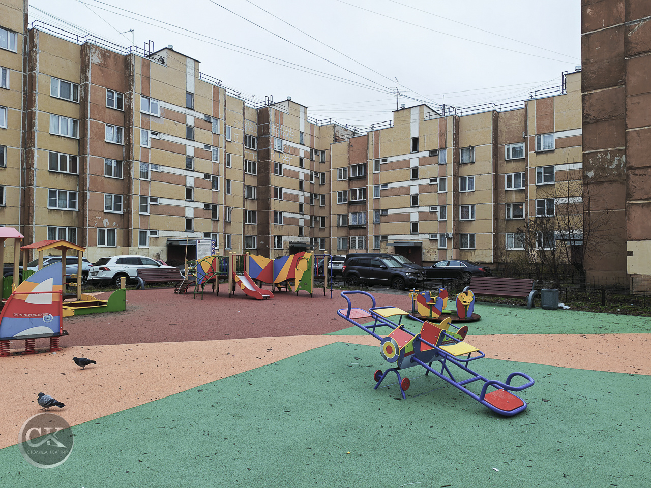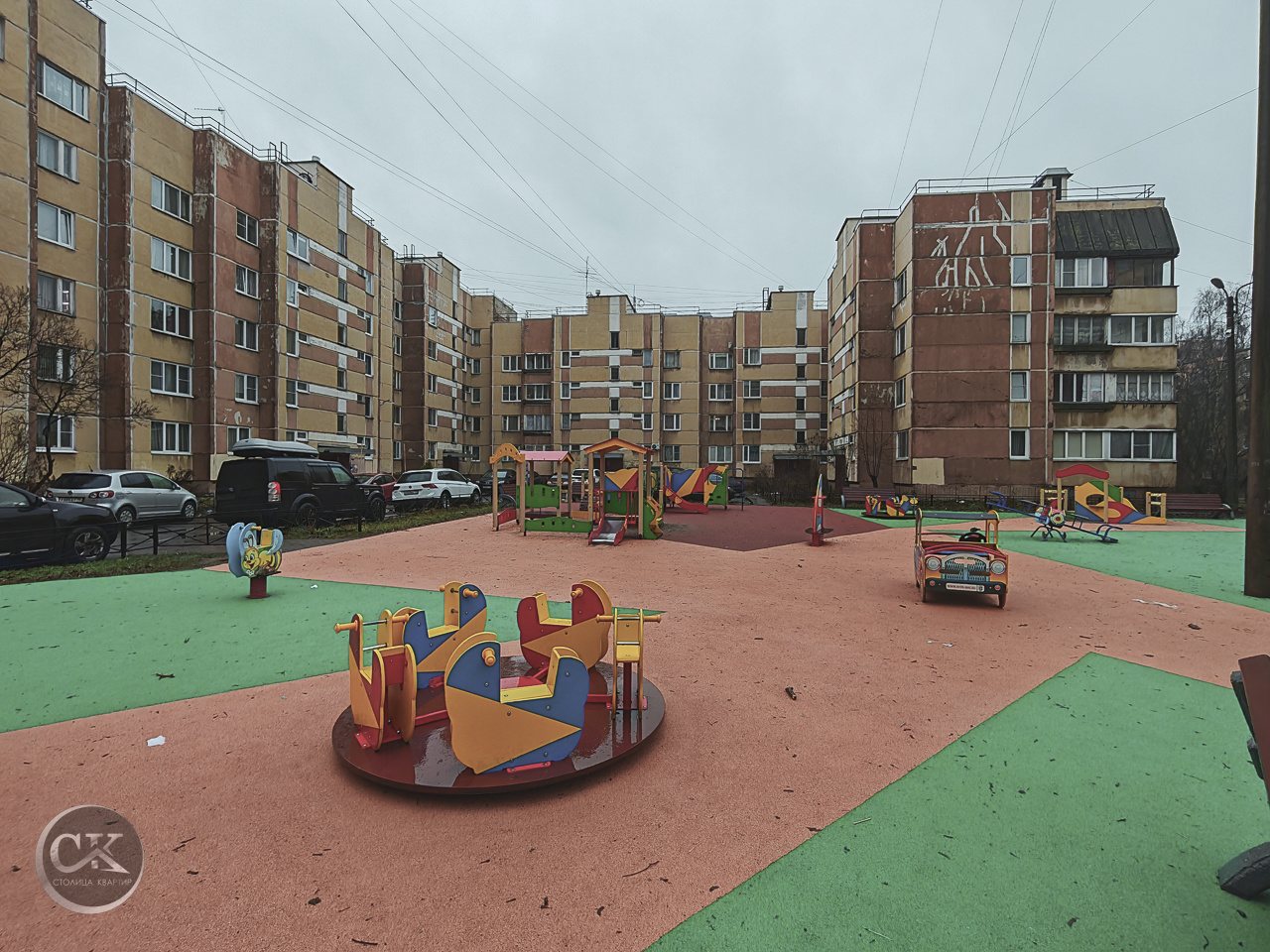 - Большая современная детская площадка во дворе